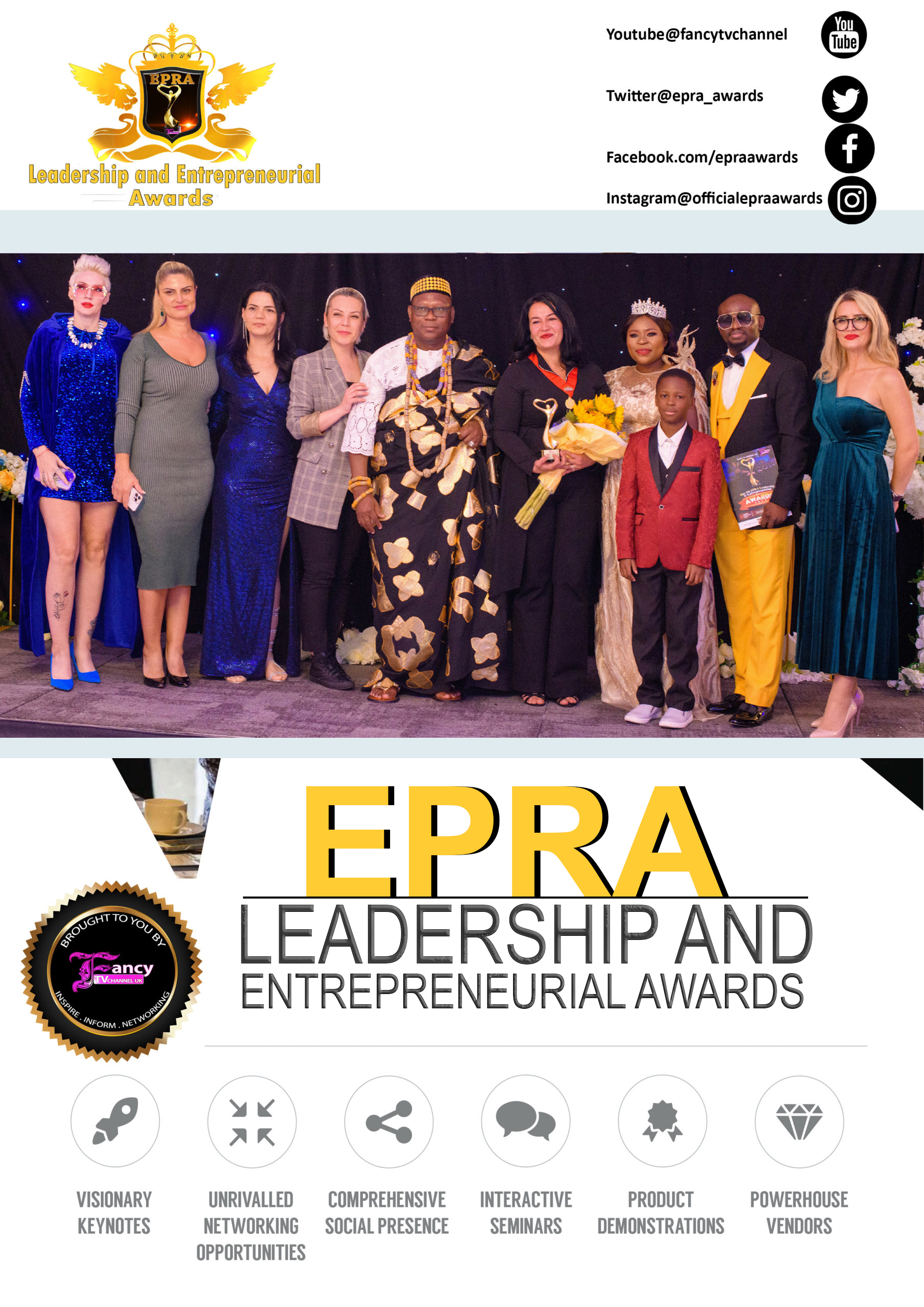 The EPRA Leadership and Entrepreneurial Awards UK 2026 Sponsorship Package offers numerous marketing and promotional benefits. Great Online Visibility linked to your social media handles. Offers continuous brand awareness well after the event