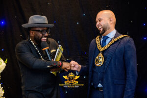 Hon. Cllr. Dr. Dominic Mbag. Fmr. Mayor. Royal Borough of Greenwich. (EPRA UK 2025. Excellence Award for Community Impact presented by Prince Bimbo Folaya.