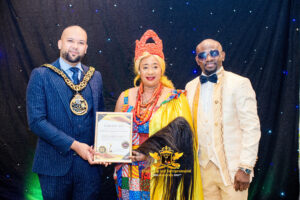 Ms Taiwo Ojutalayo. (EPRA UK 2025, Woman of Faith Humanitarian Service Award) presented by Cllr. Ahmed Mahbub, The Worshipful Mayor, London Borough of Haringey,